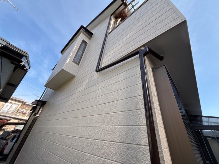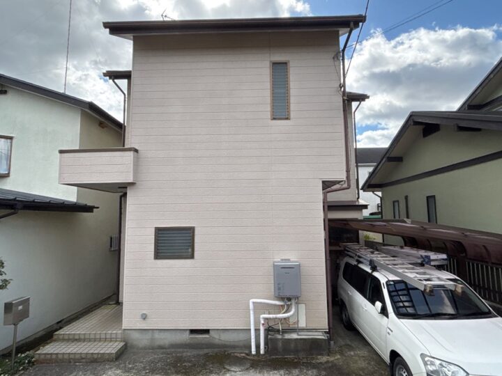 既存外壁材は窯業サイディングです。セメント・石膏などを主成分にし、一般住宅でも最も使用されている外壁材で基材に吸水性があるのが特徴です。 -