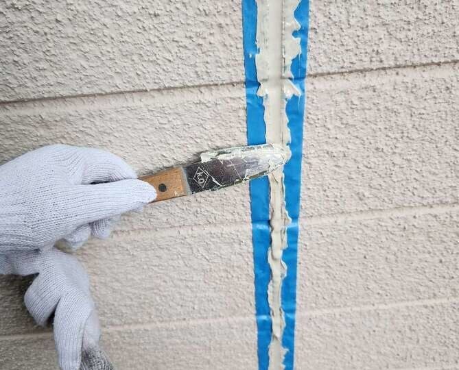 シーリングの劣化が進行しております。今回のタイミングで打ち替えをすることで雨水の浸入を阻止し、お家を長持ちさせることができます。また打ち替えをすることによってパターンがなくなりますので予めご了承ください。 -