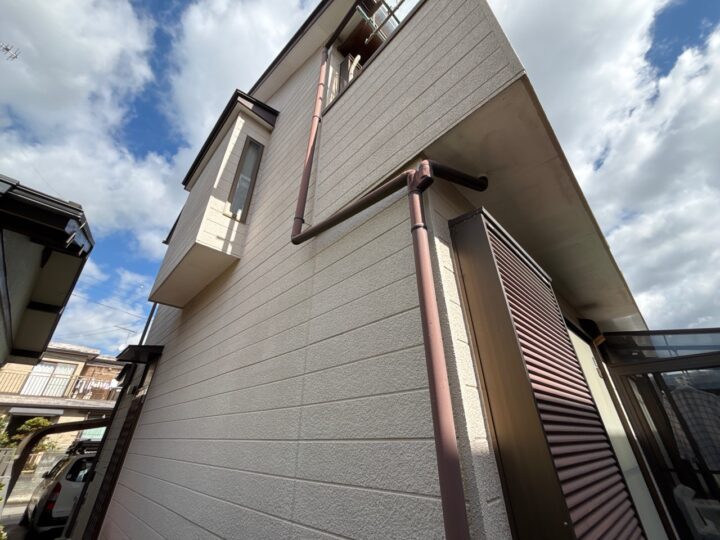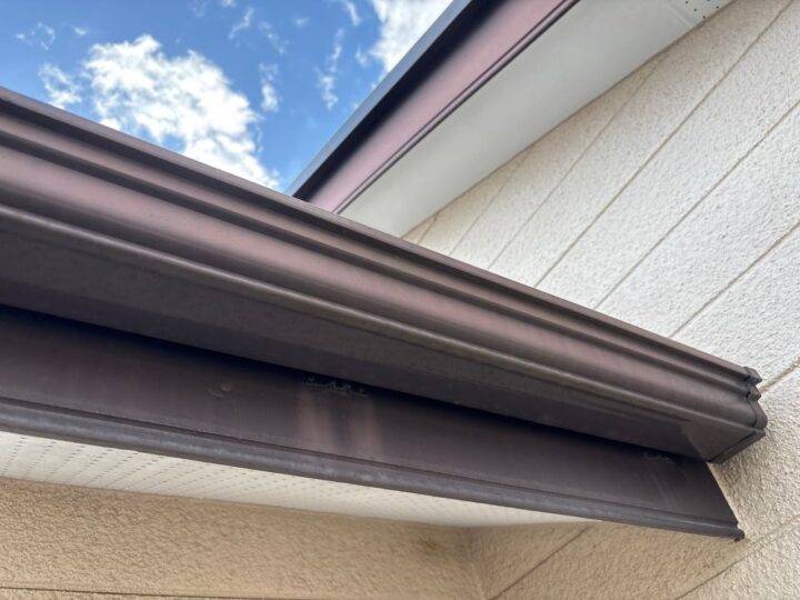 雨樋の褪色が見受けられます。今回、外壁と併せて塗装をすることで、お家を長持ちさせることができます。 -