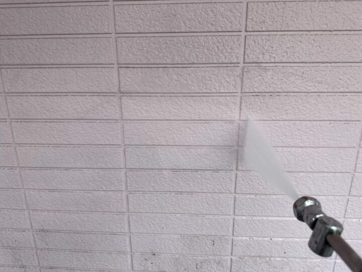 外壁の洗浄作業を行っています。 -