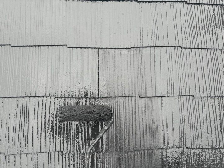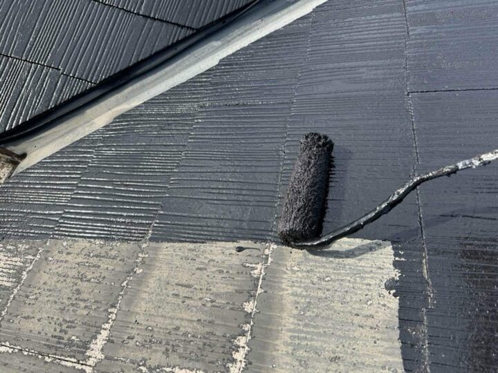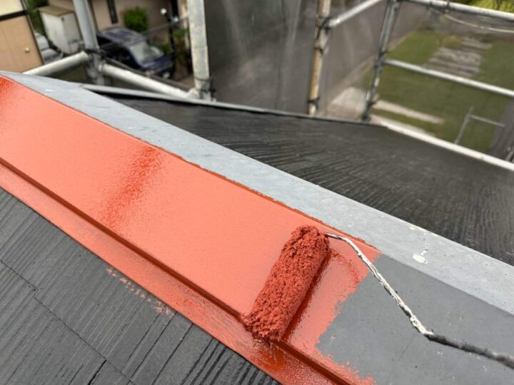 屋根の中塗りを行っています。 -