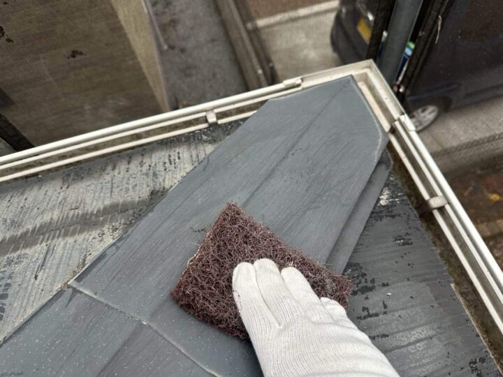 屋根板金部分のケレン作業を行っています。 -