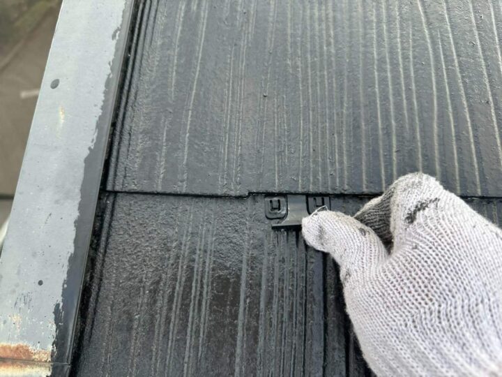 スレートの重なり部分の隙間を確保するため、タスペーサーを挿入します。 -