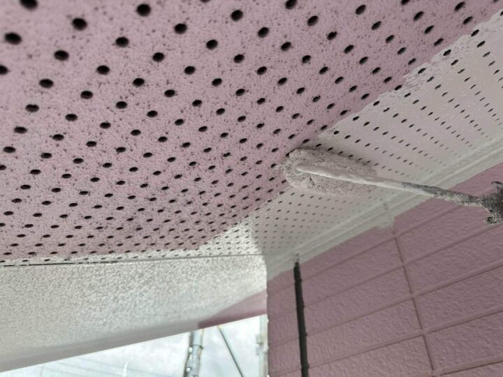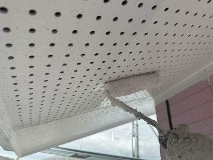 軒天の上塗りを行い完了です。 -