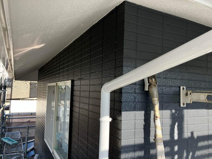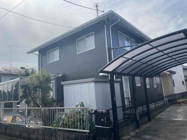 | 使用材料 | 屋根塗装:ジャパンカーボライン スーパームキコートルーフ カラー:9109 アイボリーブラック 外壁塗装:ジャパンカーボライン スーパームキコート カラー:8079 チャコール/8082 ニンバス |