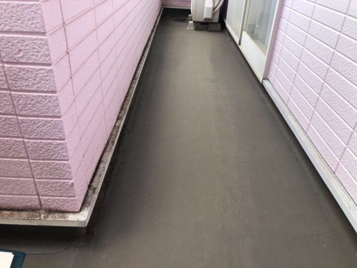既存バルコニーは塩ビシートです。劣化が進んでおり、今回のタイミングで防水専用塗料を施工することを推奨いたします。