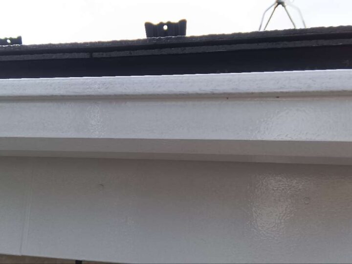 破風の褪色が見受けられます。今回、外壁と併せて塗装をすることで素材を長持ちさせることができます。 -