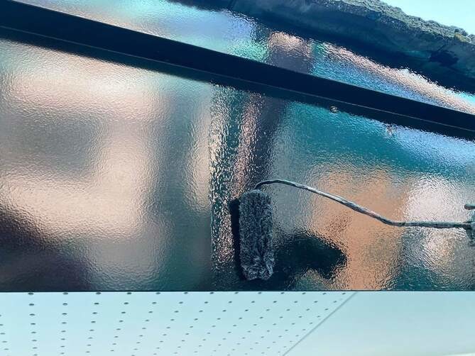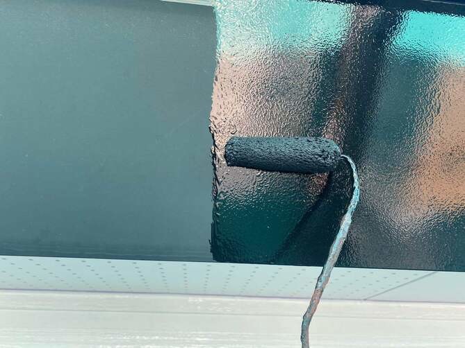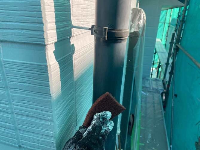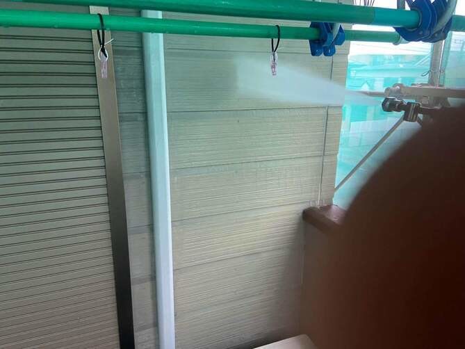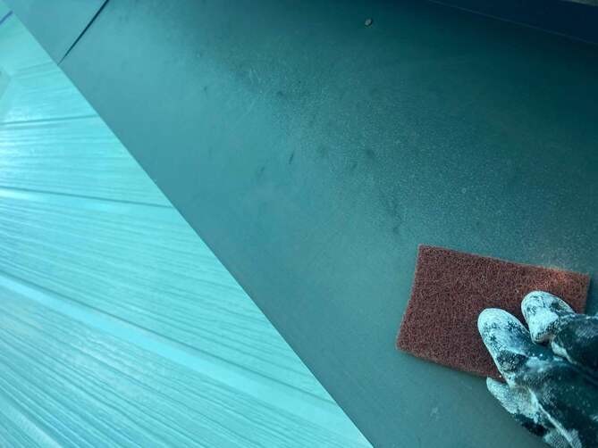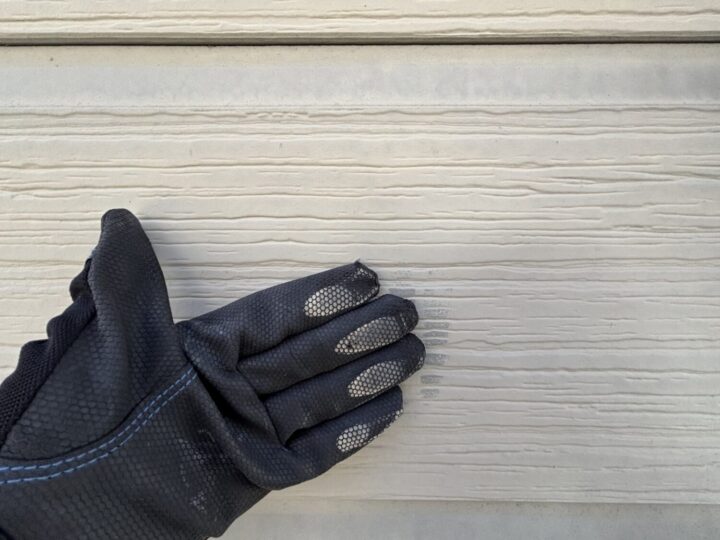 紫外線による影響から、塗料の劣化を示すチョーキングが発生しております。しっかりと高圧洗浄で汚れを落とし、塗装をする必要があります。 -