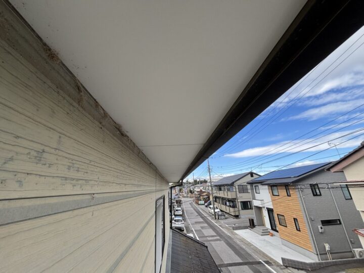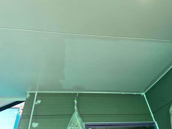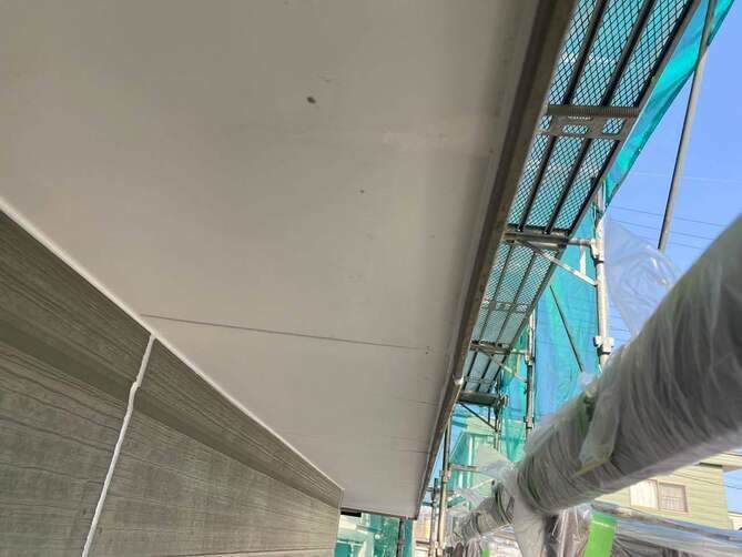 軒天の目立った劣化は見受けられませんでした。今回、軒天専用塗料を塗布することで素材を長持ちさせることができます。 -