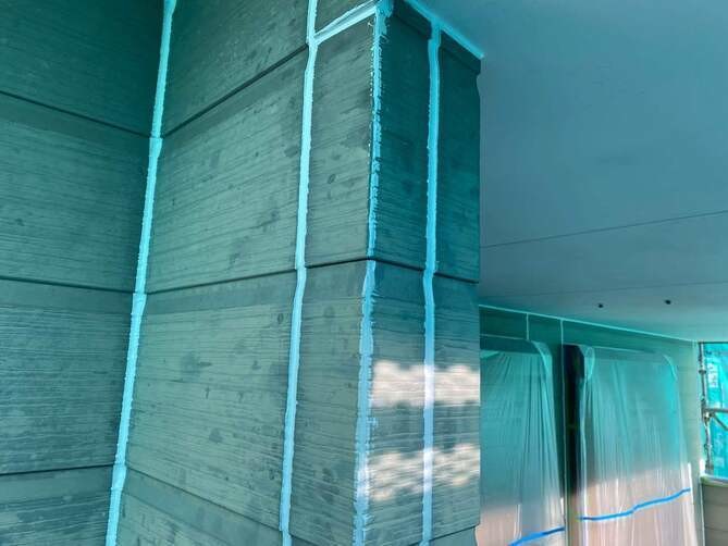 既存外壁材は窯業サイディングです。セメント・石膏などを主成分にし、一般住宅でも最も使用されている外壁材で基材に吸水性があるのが特徴です。 -