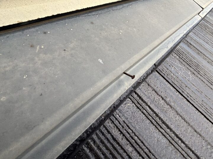 経年変化の影響により笠木部分の釘が浮いている箇所があります。 -