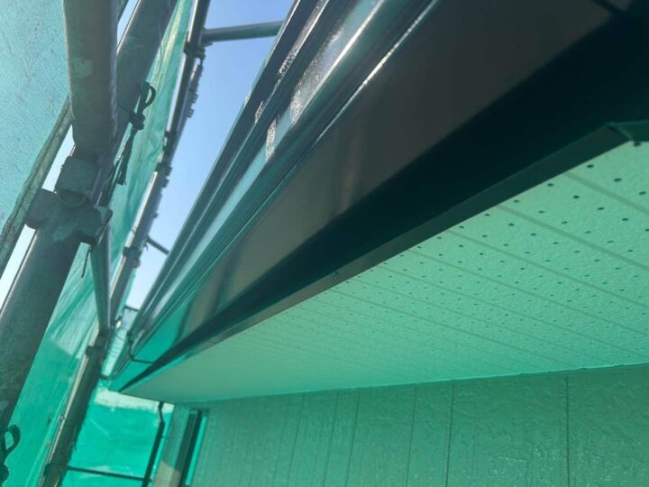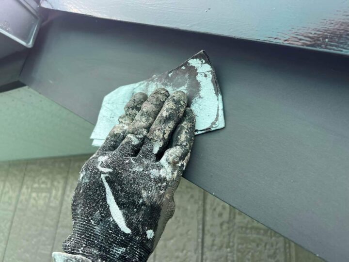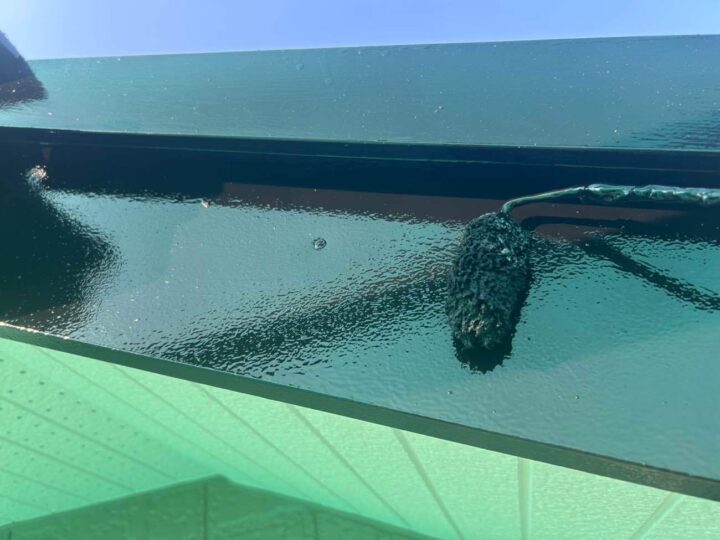 破風の褪色が見受けられます。今回、外壁と併せて塗装をすることで素材を長持ちさせることができます。 -