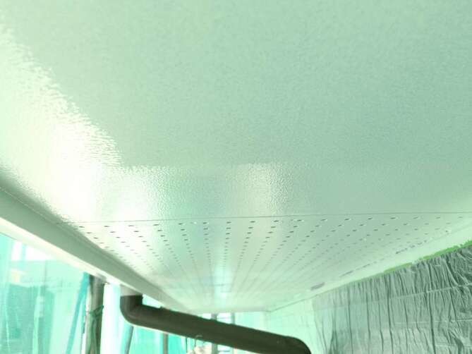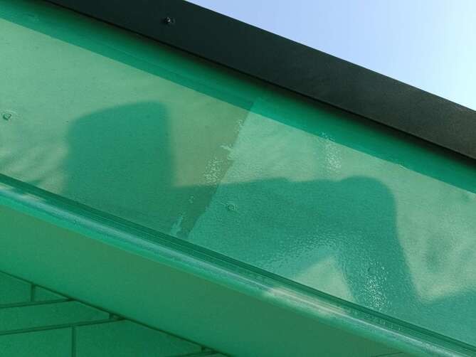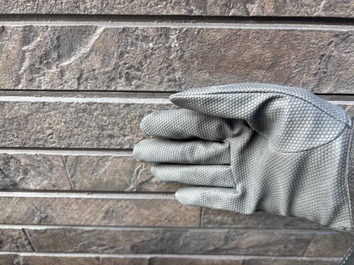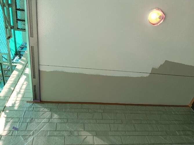 紫外線による影響から、塗料の劣化を示すチョーキングが一部発生しております。しっかりと高圧洗浄で汚れを落とし、塗装をする必要があります。 -