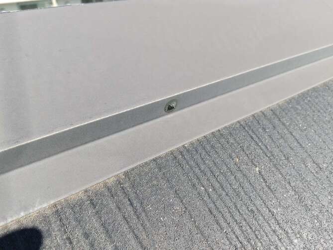経年変化の影響により笠木部分の釘が浮いている箇所があります。打ち直しまたはビスで打ち替えを行い、シーリングで補修をし、塗装をする必要があります。 -