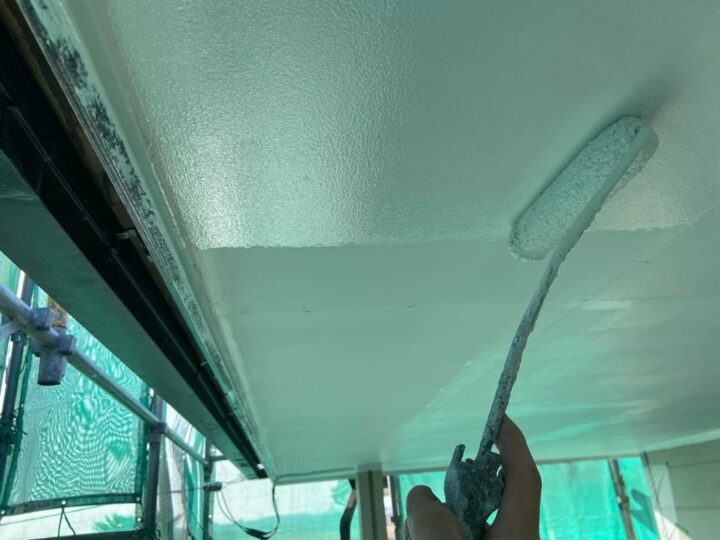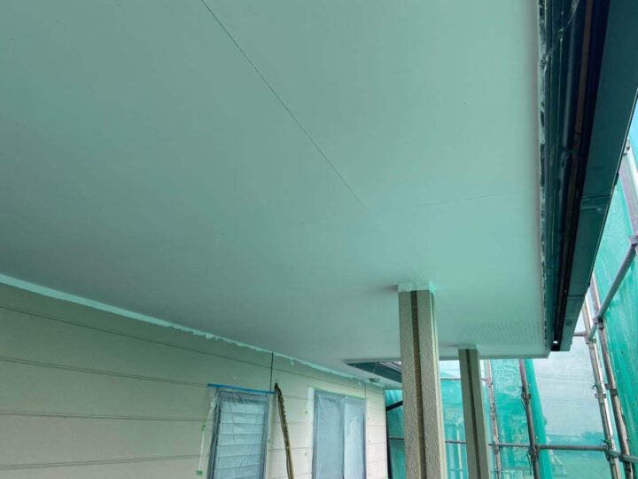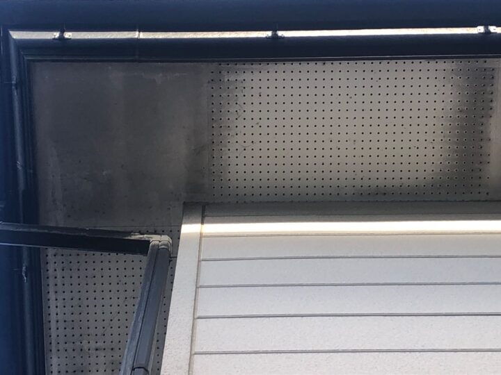 軒天部分にカビが見受けられます。今回、防カビ成分の入った軒天専用塗料を塗布することで素材を長持ちさせることができます。 -