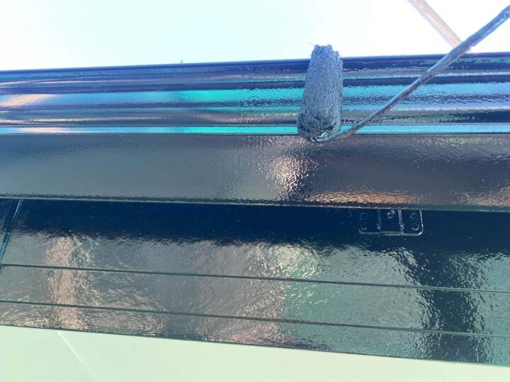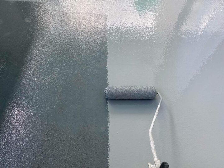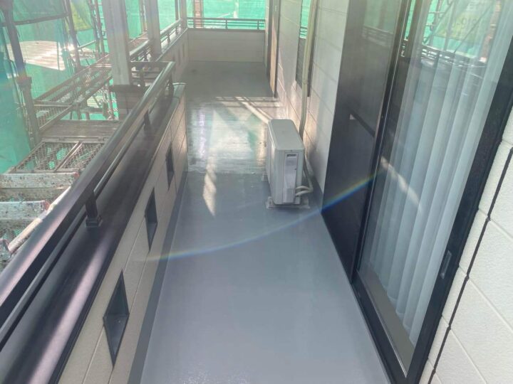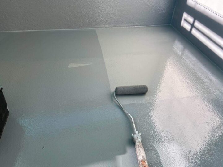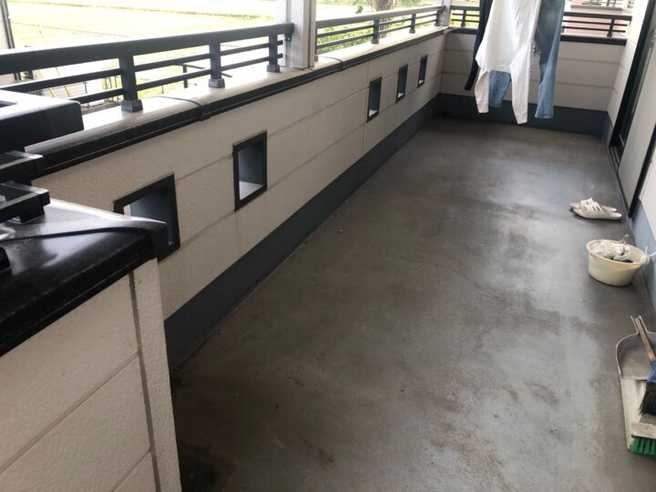 既存バルコニーはFRPです。劣化が進んでおり、今回のタイミングで防水専用塗料を施工することを推奨いたします。