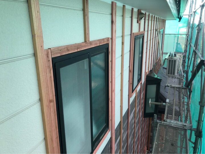 既存外壁材は窯業サイディングです。セメント・石膏などを主成分にし、一般住宅でも最も使用されている外壁材で基材に吸水性があるのが特徴です。 -