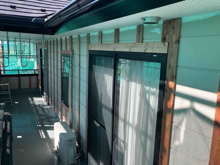 幕板の褪色が見受けられます。今回、外壁と併せて塗装をすることで、お家を長持ちさせることができます。(外壁カバーの際は胴縁打ち込みの関係で撤去となります -