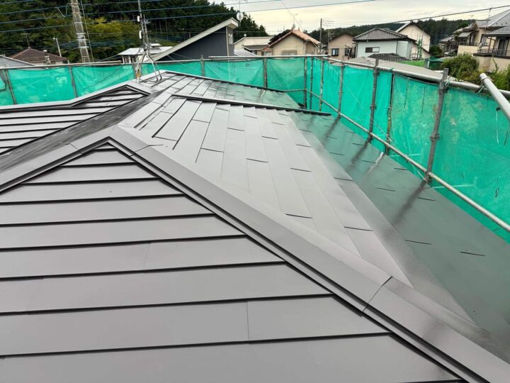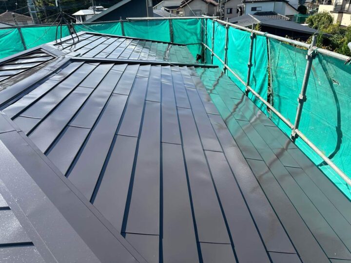 | 使用材料 | 屋根塗装:ジャパンカーボライン スーパームキコートルーフ カラー:9114 キャビアブラウン 外壁塗装:ジャパンカーボライン スーパームキコート カラー:8084 カラーボンドメリーノ |