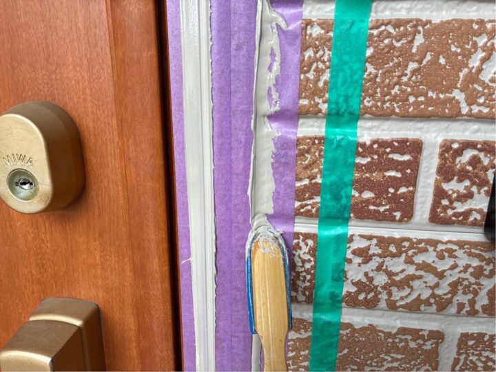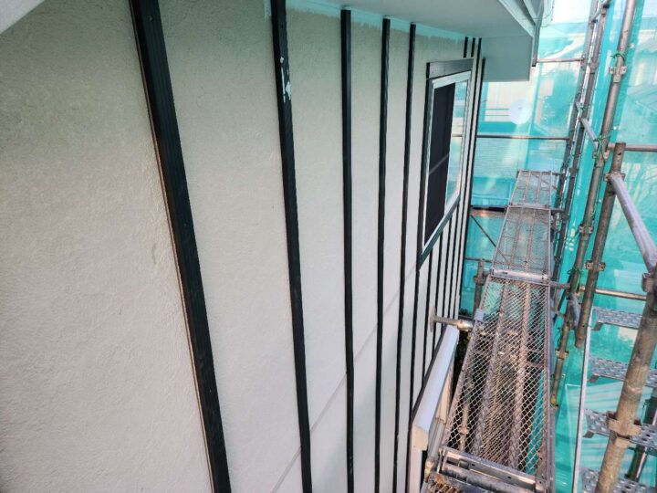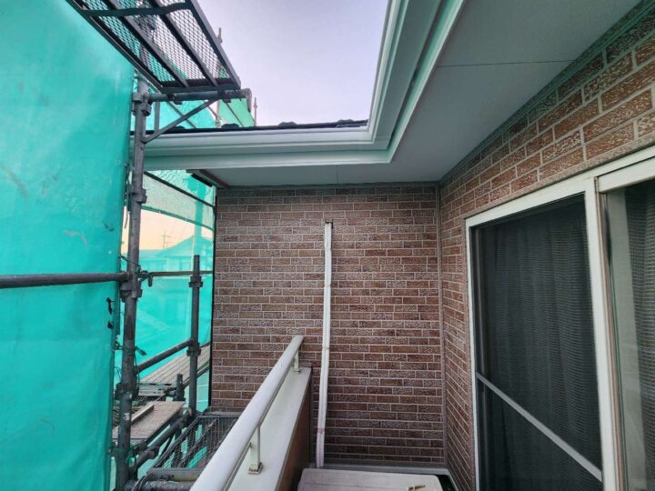 破風の褪色が見受けられます。今回、外壁と併せて塗装をすることで素材を長持ちさせることができます。 -