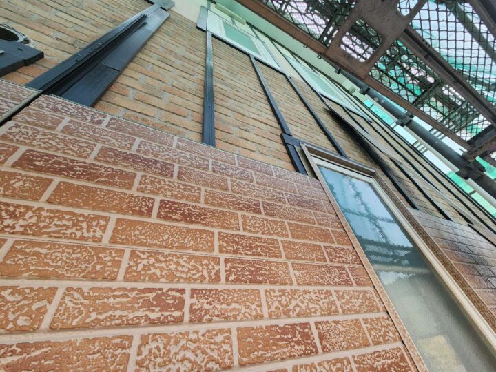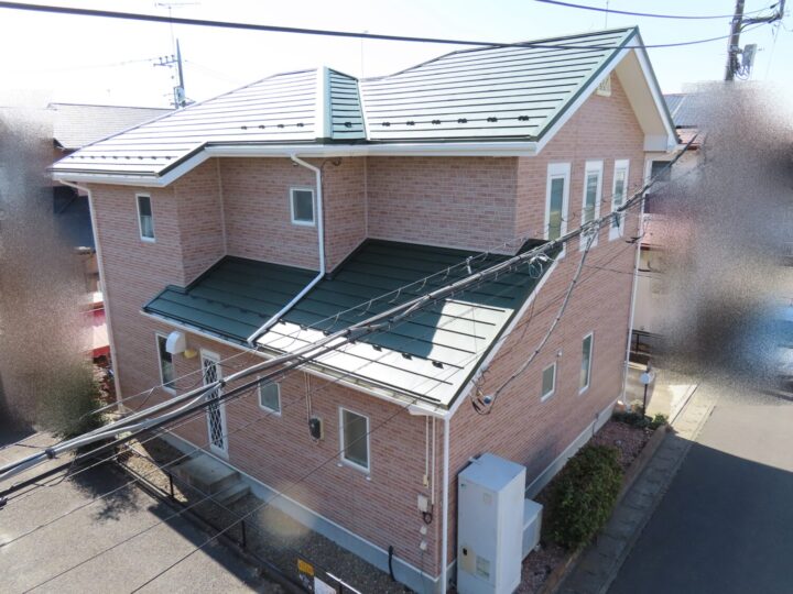 | 使用材料 | 屋根材:ニチハ 横暖ルーフαS カラー:グリーン 外壁材:旭トステム カジュアルブリックⅡRF カラー:CHミストオレンジ |