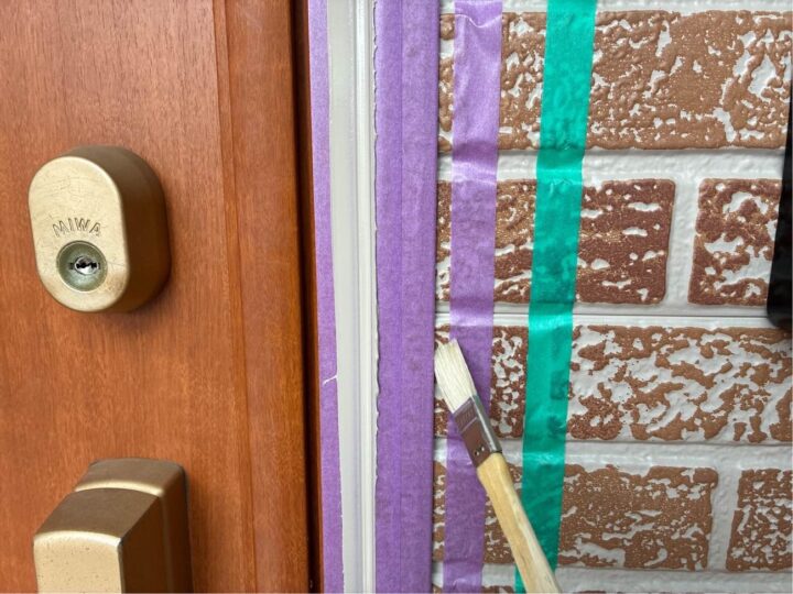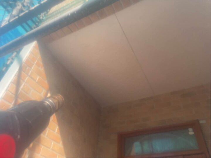 軒天部分にカビが見受けられます。今回、防カビ成分の入った軒天専用塗料を塗布することで素材を長持ちさせることができます。 -