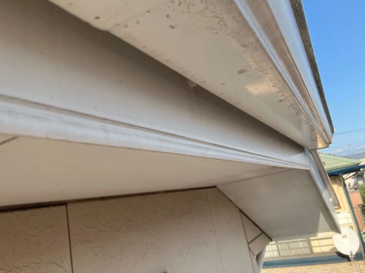 破風の褪色が見受けられます。今回、外壁と併せて塗装をすることで素材を長持ちさせることができます。 -