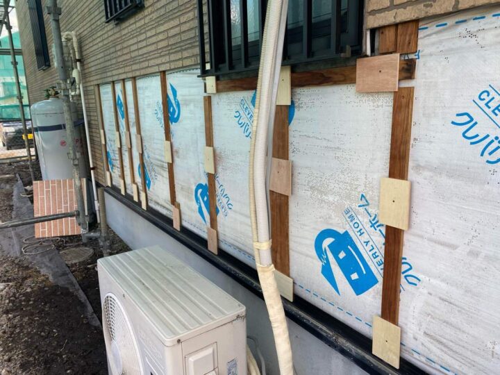 外壁の下塗りを行っています。 -