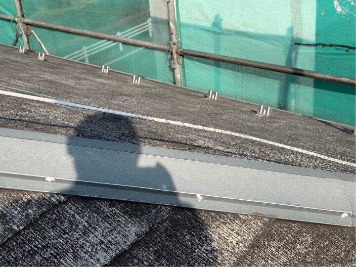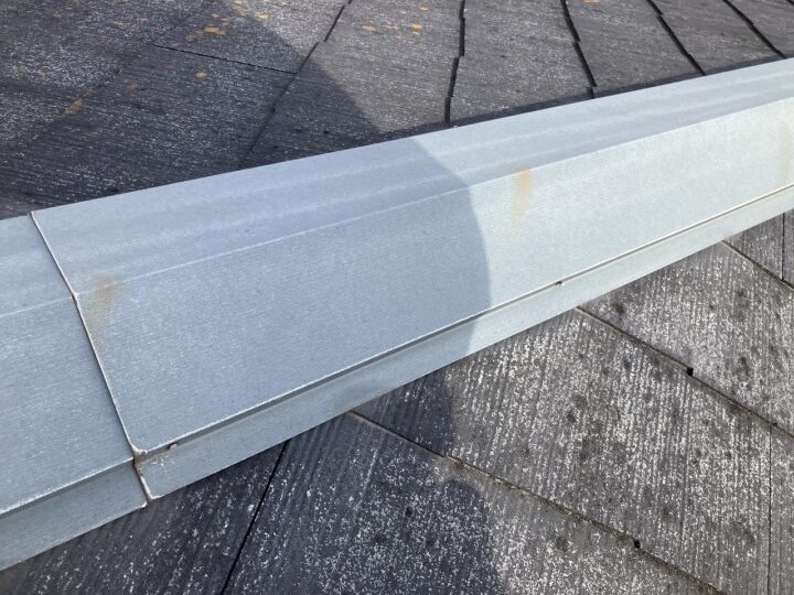 経年変化の影響により棟部分の釘が浮いている箇所があります。打ち直しまたはビスで打ち替えを行い、シーリングで補修をし、塗装をする必要があります。 -