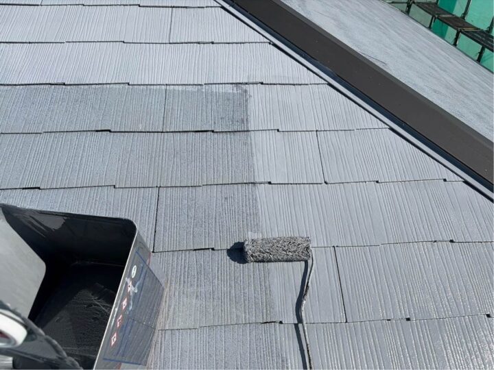 屋根の下塗り2回目を行っています。 -
