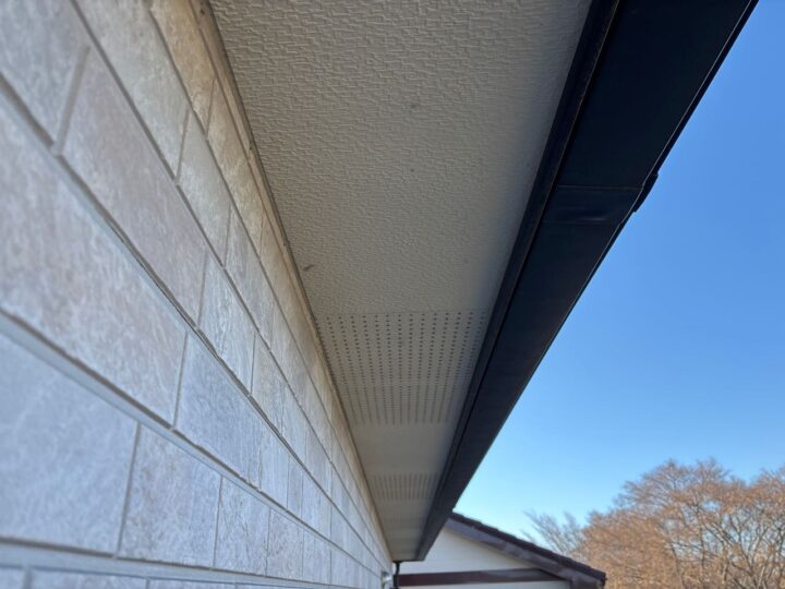 軒天の目立った劣化は見受けられませんでした。今回、軒天専用塗料を塗布することで素材を長持ちさせることができます。 -