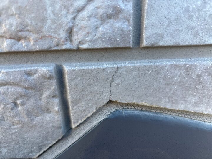 幕板の褪色が見受けられます。今回、外壁と併せて塗装をすることで、お家を長持ちさせることができます。また一部のひび割れも見受けられます。