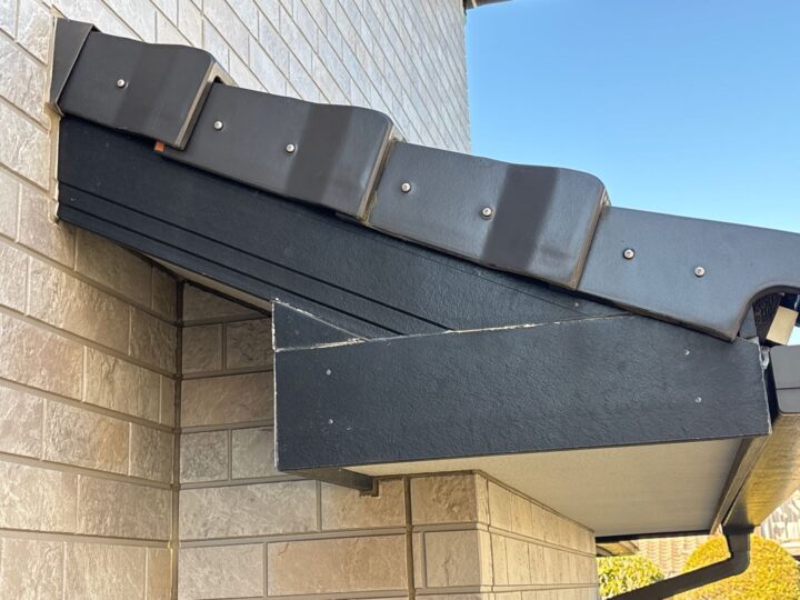 破風の褪色が見受けられます。今回、外壁と併せて塗装をすることで、お家を長持ちさせることができます。 -