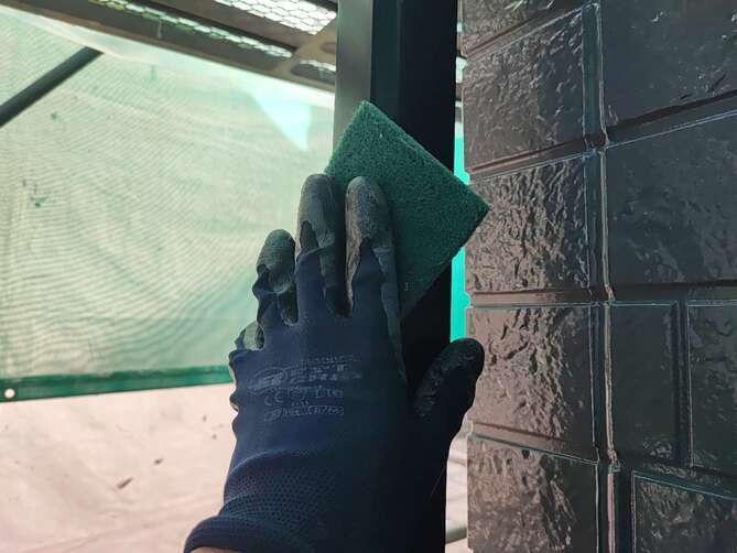 紫外線による影響から、塗料の劣化を示すチョーキングが発生しております。しっかりと高圧洗浄で汚れを落とし、塗装をする必要があります。 -