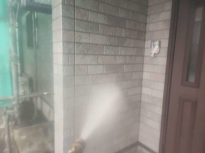 外壁の洗浄作業を行っています。 -
