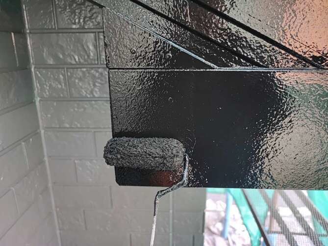 破風の下塗りを行っています。 -