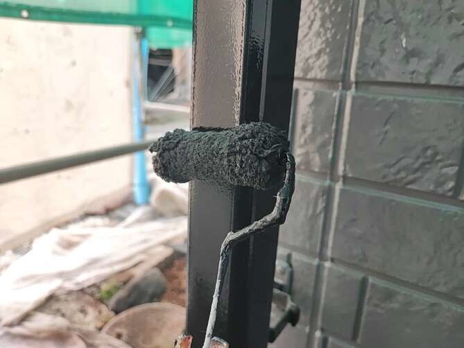 雨樋の下塗りを行っています。 -