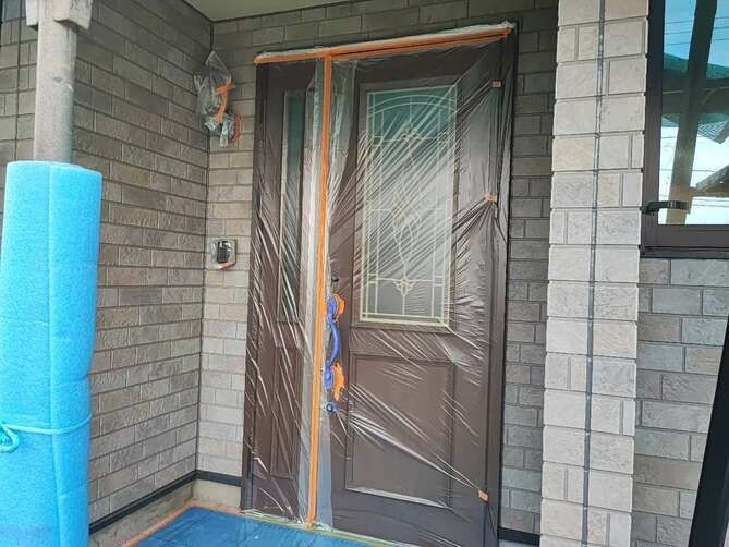 ビニルの養生を行っています。 -