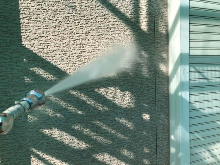 外壁の洗浄作業を行っています。 -