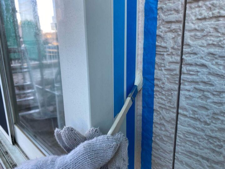 マスキングテープを張り、プライマー処理を行っています。 -