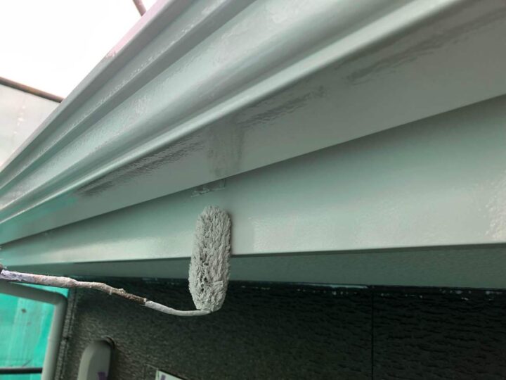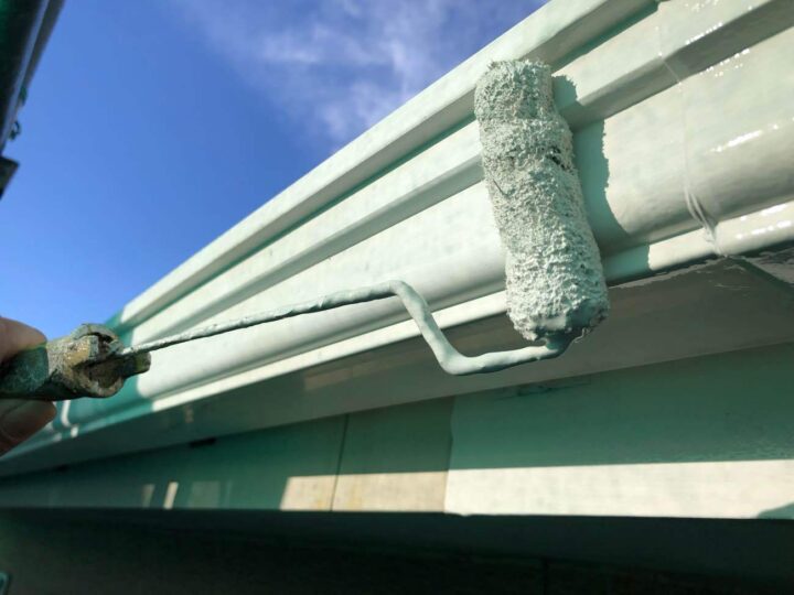 雨樋の上塗りを行っています。 -