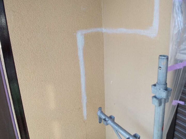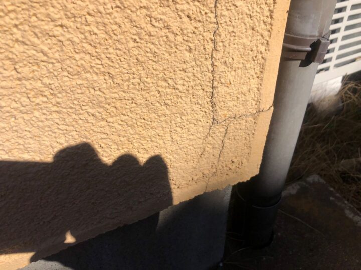 外壁のクラックが見受けられます。塗装の際は下地調整の工程が必要になります。 -