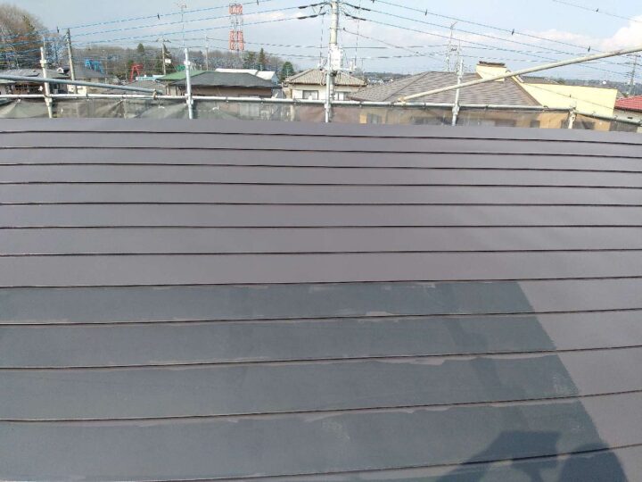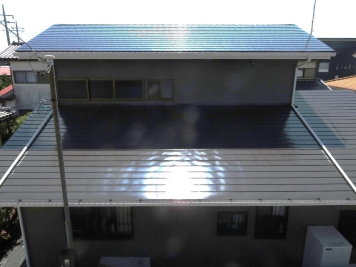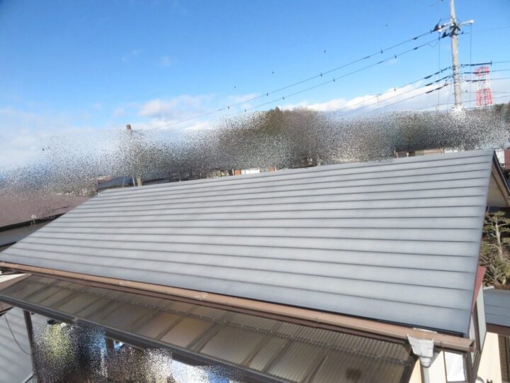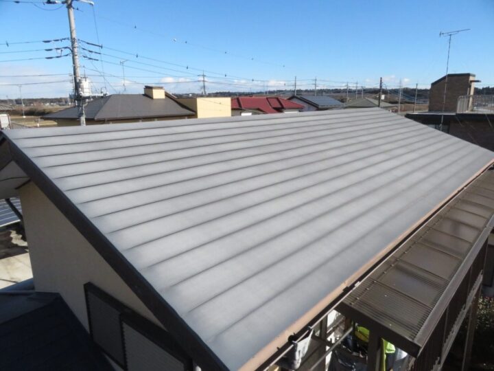 既存屋根材は金属屋根 横葺きです。 アルミニウム55%のガルバリウム鋼板のため、軽量でサビにくい素材です。 -