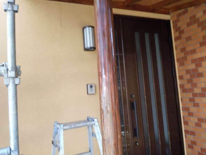 エアコンホースカバーのチョーキングが見受けられます。今回、外壁と併せて塗装をすることで、お家を長持ちさせることができます。 -